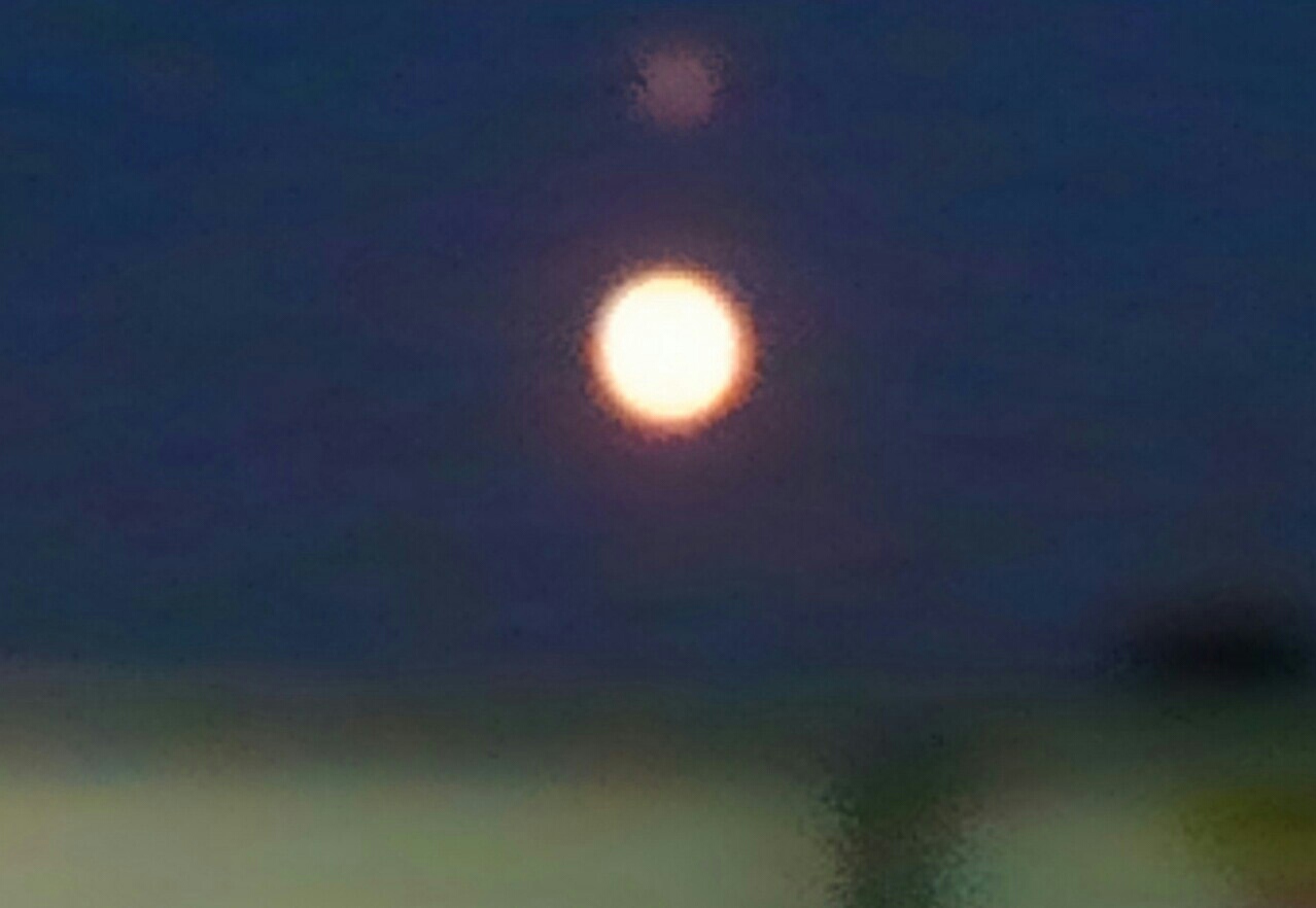 昇って間もない赤いお月様。